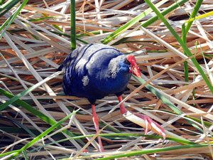 Im Spätwinter sind die meisten Gänsegeier bei der Balz und Eiablage. Einzelne brüten sogar schon. Wir beobachten viel vom Fortpflanzungsverhalten dieser bis zu 2 ½ Metern klafternden Großvögel an ihren Brutplätzen in schroffen Felswänden, wo sie u.a. prächtige Flugschauen bieten. Durch das Aufstauen von Wasserläufen sind Feuchtgebiete entstanden, in welchen sich u.a. Purpurhühner angesiedelt haben.